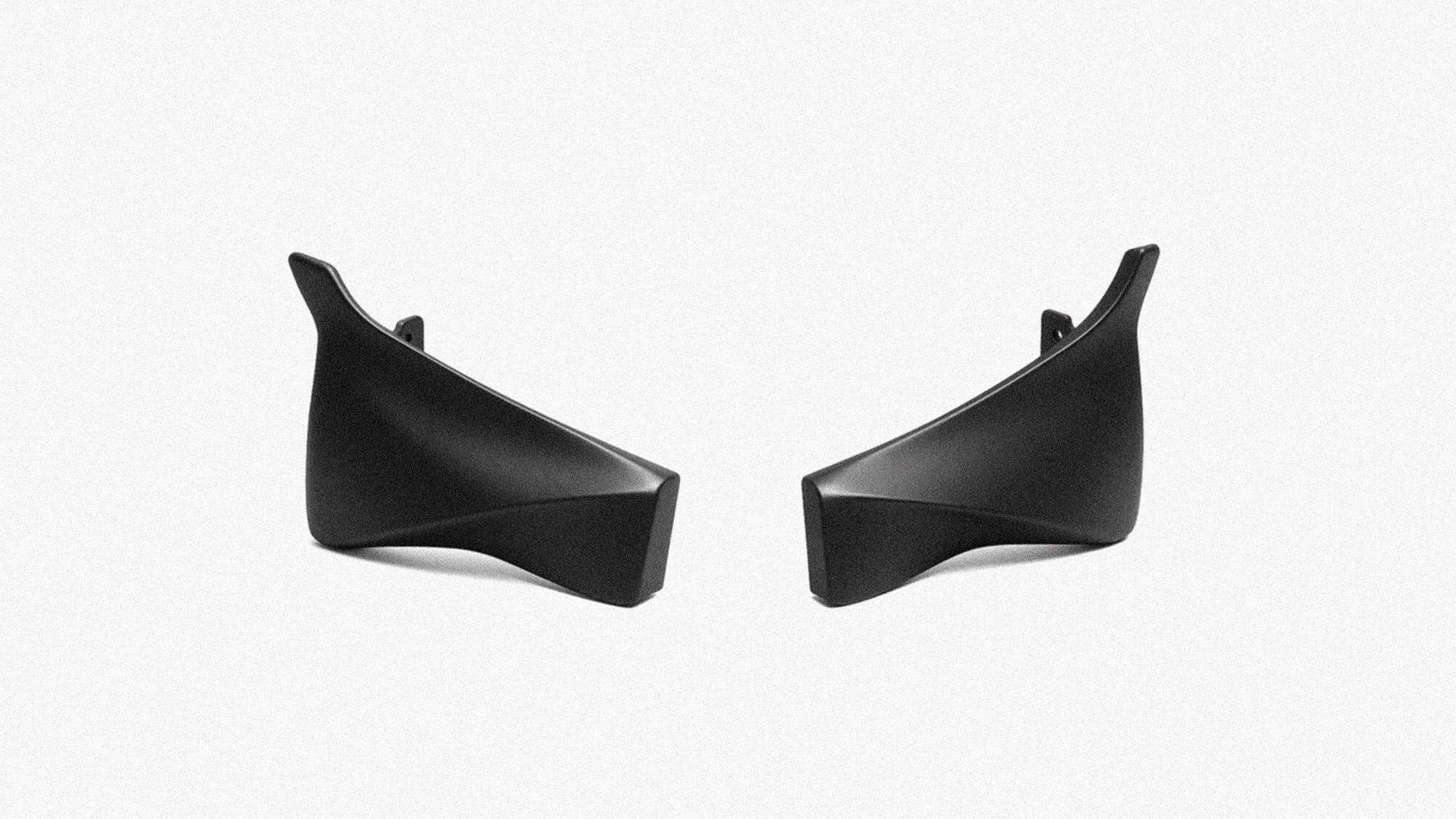 Étape 3 : Insérer les écrous M4 dans les pattes de support latérales. Assembler ces dernières avec les demis-ailerons à l’aide des vis M4 et de la clé Allen 2.5 mm fournies. N’ayez pas peur de décaler le cache supérieur pour pouvoir effectuer le vissage, il est flexible et ne cassera pas.