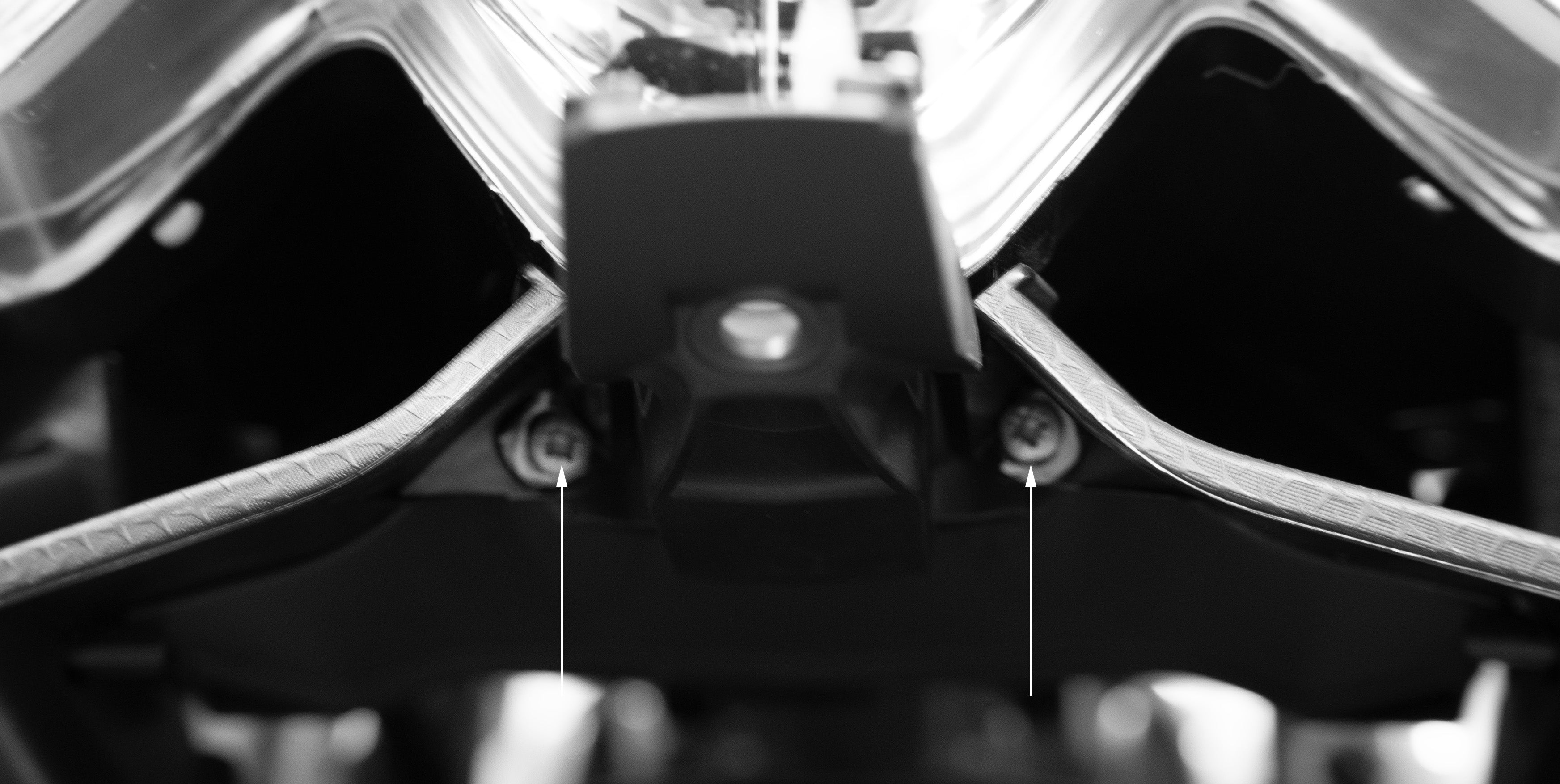 Étape 5 : Une fois que tout est complètement installé, serrer généreusement les quatre vis M4 de la patte centrale en premier. Pour finir l’installation serrer les quatre vis Torx des carénage latéraux (non montré à l’image).